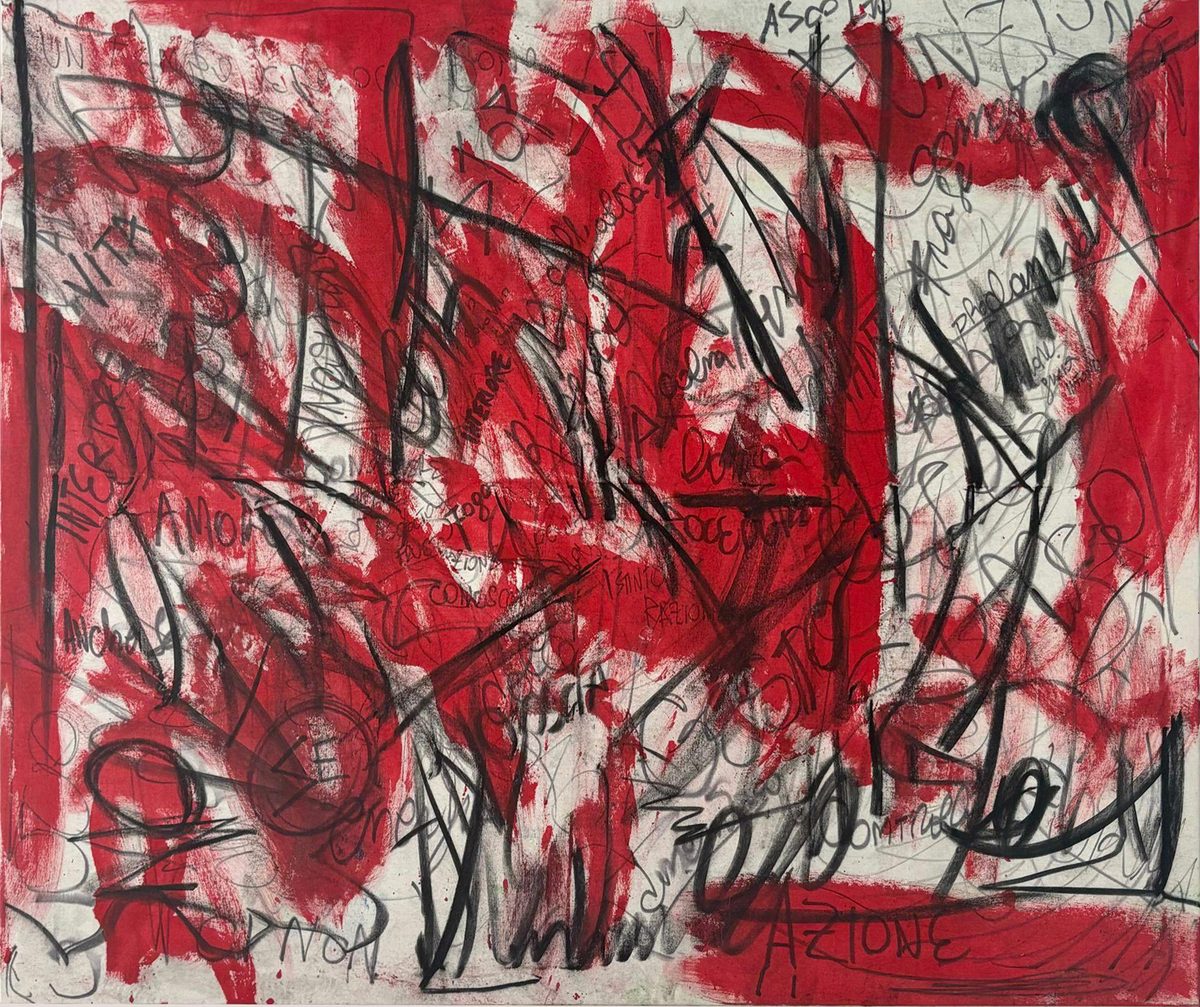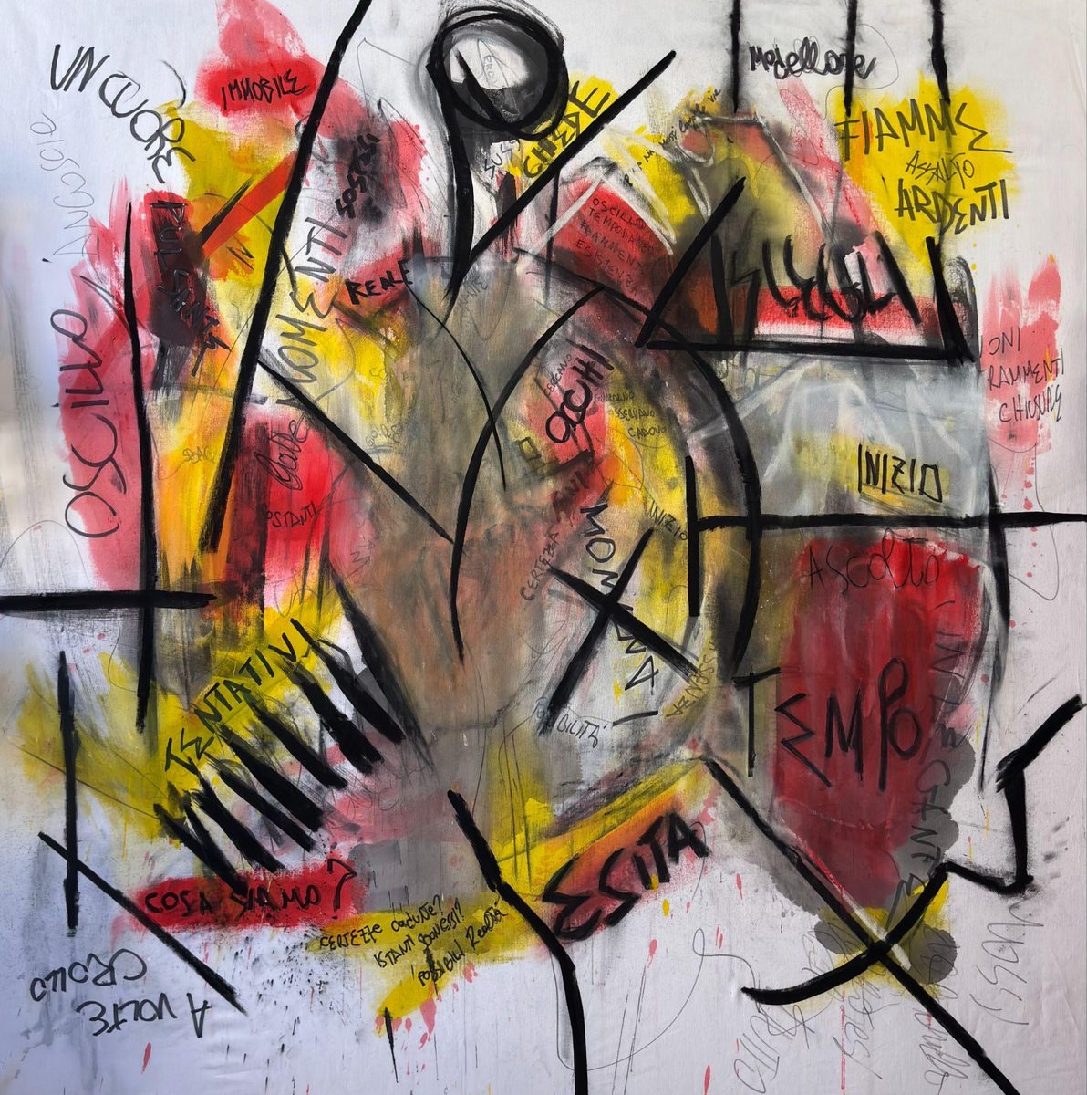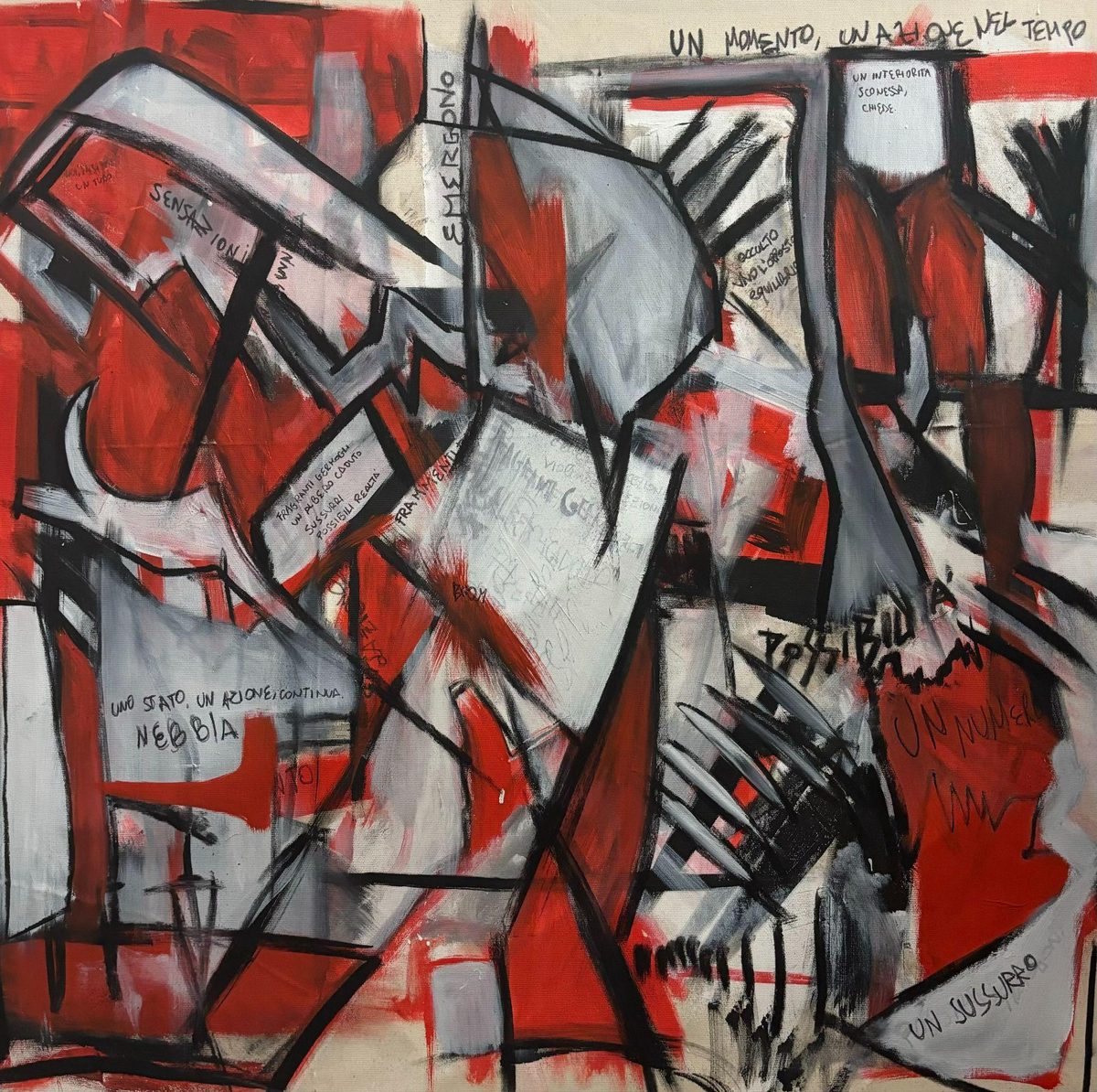 La realizzazione delle opere nasce da un processo di immedesimazione intensa: l’artista intraprende una lotta silenziosa e graduale con la tela, affinché restituisca quelli che lui ama definire gli “andamenti”, i movimenti interiori che sente emergere da sé, in una continua alternanza tra eccesso e immobilità, impulso e controllo, istinto e raziocinio.