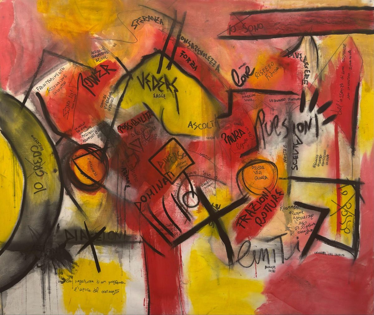Un’esperienza che lui stesso descrive come l’attraversamento di un campo minato, in cui tenta strenuamente di “affievolire il disagio psicologico con un tubetto di acrilico”.