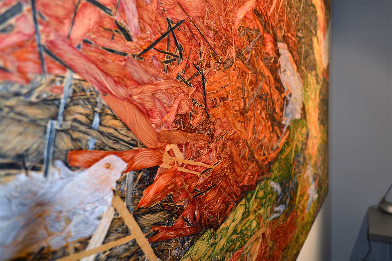 Si può assegnare un momento preciso alla nascita del Moderno in arte: quando i pittori hanno scoperto che attraverso i pennelli si poteva non solo riprodurre il reale, ma anche esplicare l’irreale. Quindi far vedere l’invisibile. Non so se sia giusto definire le opere di Arianna Bonamore immagini, perché hanno una densità sconosciuta all’altra arte, quella che si appoggia al referente, al dialogo con il già visto. Vengono invece da un luogo impraticabile, indescrivibile, e portano i segni di un processo che avviene a strati. Queste opere ci appartengono perché rifiutano la leggerezza dell’immagine, e intrattengono traffici con una intima densità. Che sembrino moderne, a questo punto, pare una semplice casualità. Si soffermano, oltre il piacere, anche sul lungo processo che le ha generate. Ma, forse resistendo, ci lasciamo dialogare da queste opere offuscate da un eccesso di irraggiamento, che, peraltro, proviene da un luogo oscuro. Data la loro origine il loro destino è che appaiano scomode. Ma ciò che udiamo da loro non lo potremo ascoltare altrove, e l’esclusività è l’unico valore che non ha mai cercato approvazione. Le opere di Arianna Bonamore si intrattengono anche sui loro pallidi intermediari, quei fantasmi lignei che si offrono come canovaccio all’apparizione. Ci parlano di mani medievali che ancora non conoscono la velenosa magnificenza dello spettacolo, e si affidano al segno. Ma da queste oceanografie private si esprime l’unica ars. Il più duro, il più esigente, il più ostinato, l’unico amore possibile.
