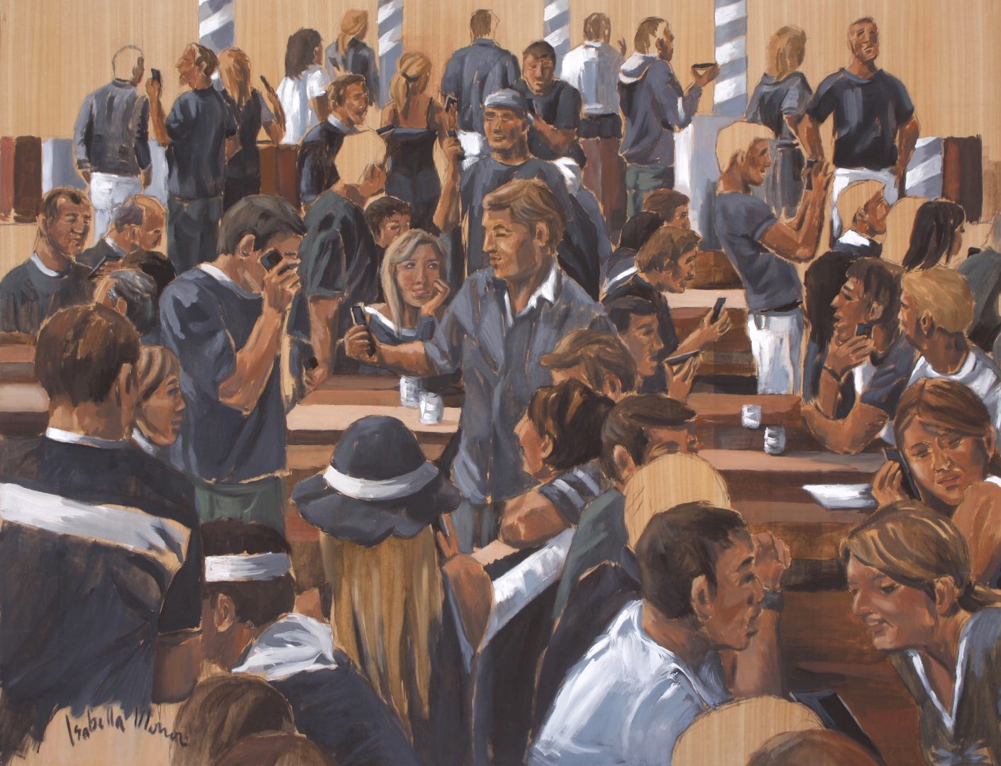 Nella zona "Notte" le opere di Isabella Munari in cui le scene conviviali e del tempo libero fanno da base a una pittura limpida e solare. I suoi personaggi sono ripresi in eventi di tempo libero o sportivo in cui la leggerezza dello stato d’animo del momento si riflette sulla leggerezza della visione.
