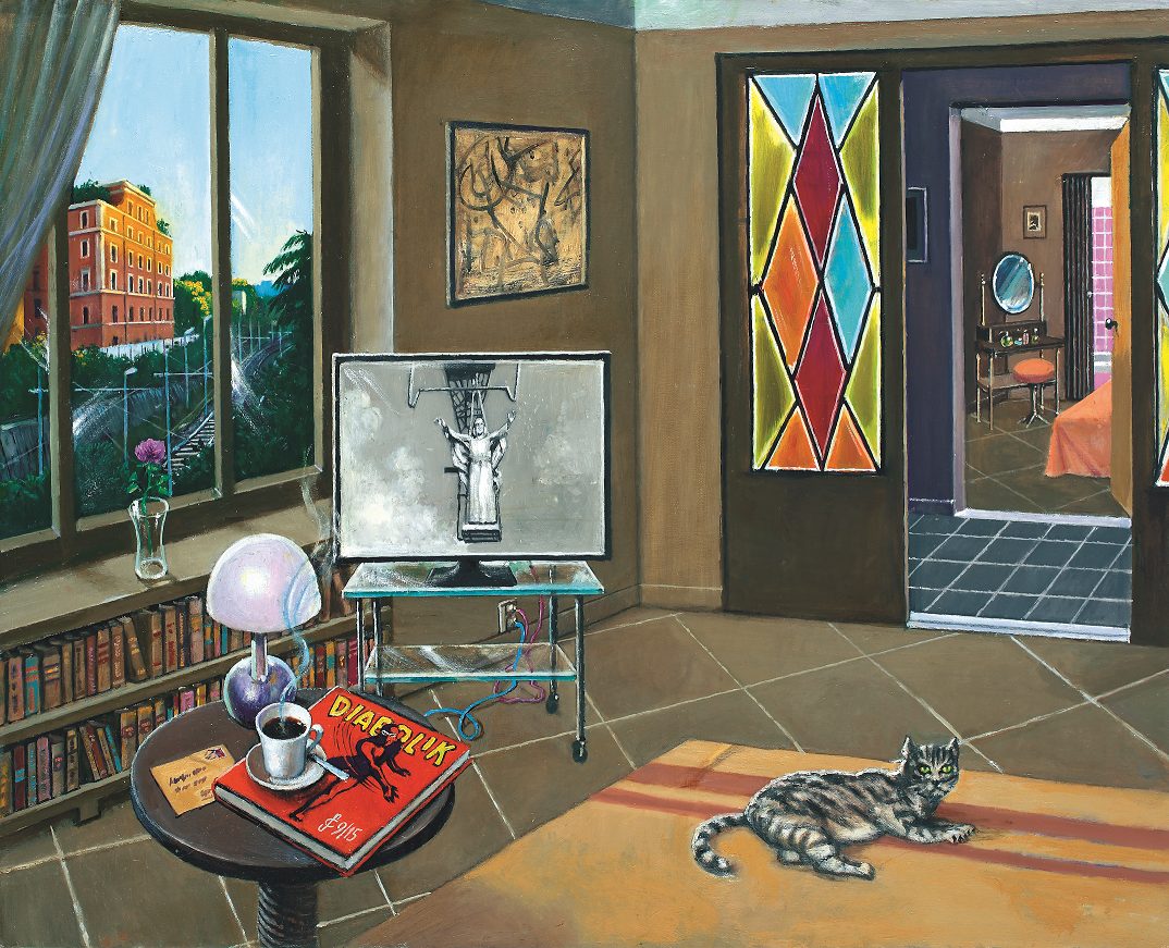 Nella zona “Relax” le irreali ma consapevoli presenze umane di Sergio Ceccotti all’interno di ambienti dal sapore “noir” e il tempo sospeso, un rapporto tra l’arte e la vita, una rigenerazione dei cicli umani che formano la nostra storia quotidiana. Visioni eteree le sue dove la luce forte scompone la realtà rendendola illusoria facendoci scoprire l’invariabilità del tempo.