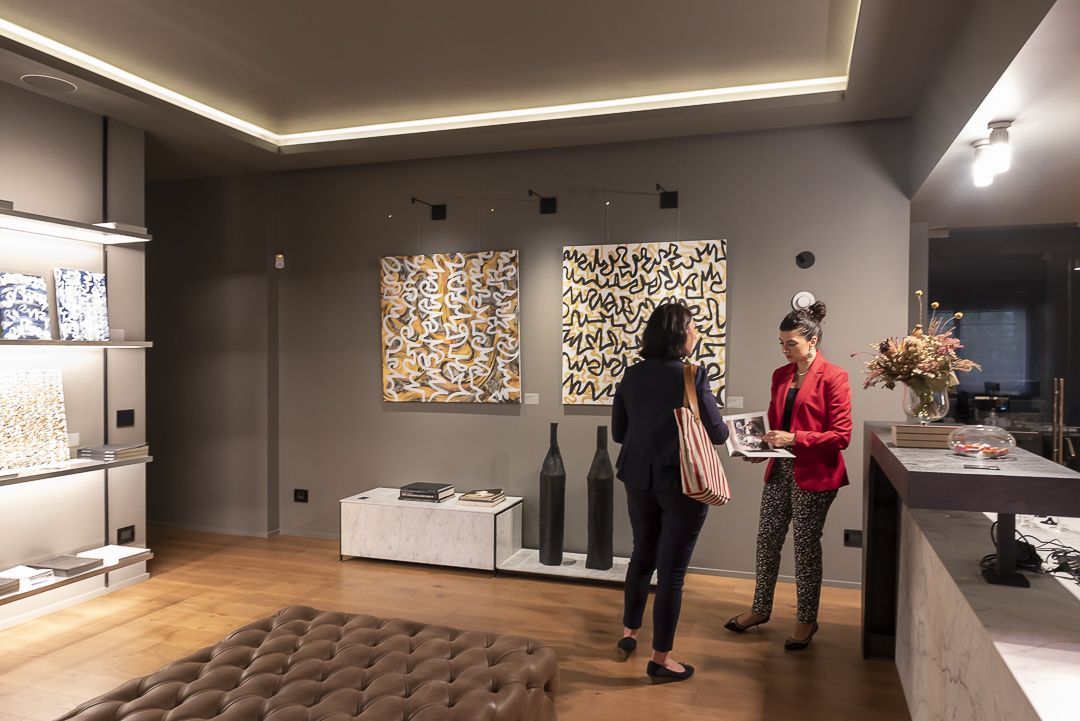 Un progetto espositivo dove le opere degli degli artisti vengono presentate in un ambiente domestico raffinato costruito appositamente per valorizzarle.