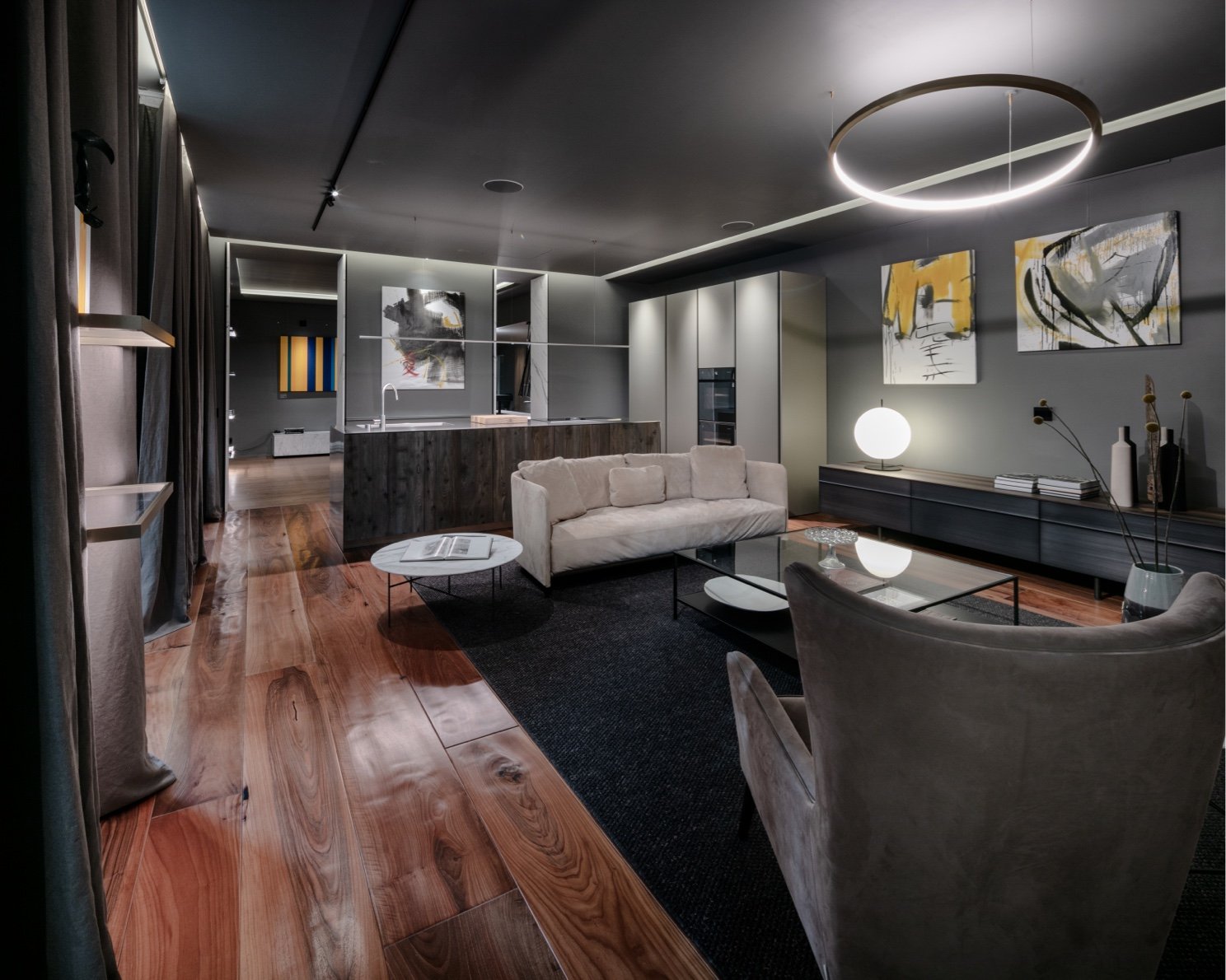 In questa quarta occasione il design della “casa base” l’accostamento delle opere nei vari ambienti non è casuale ma rinnova il gioco dello sguardo di chi vive l’ambiente.