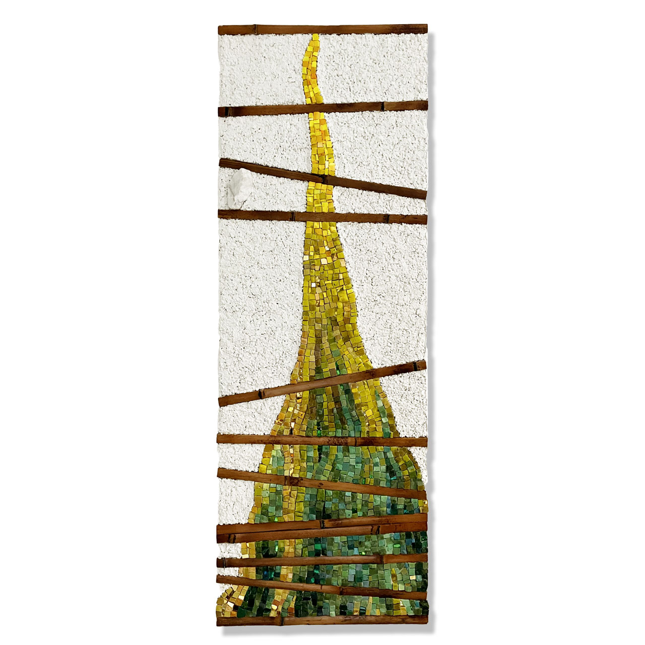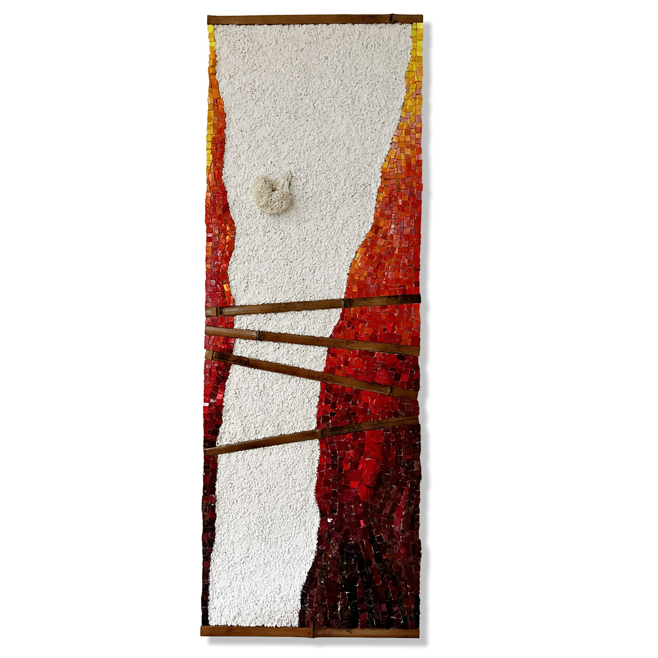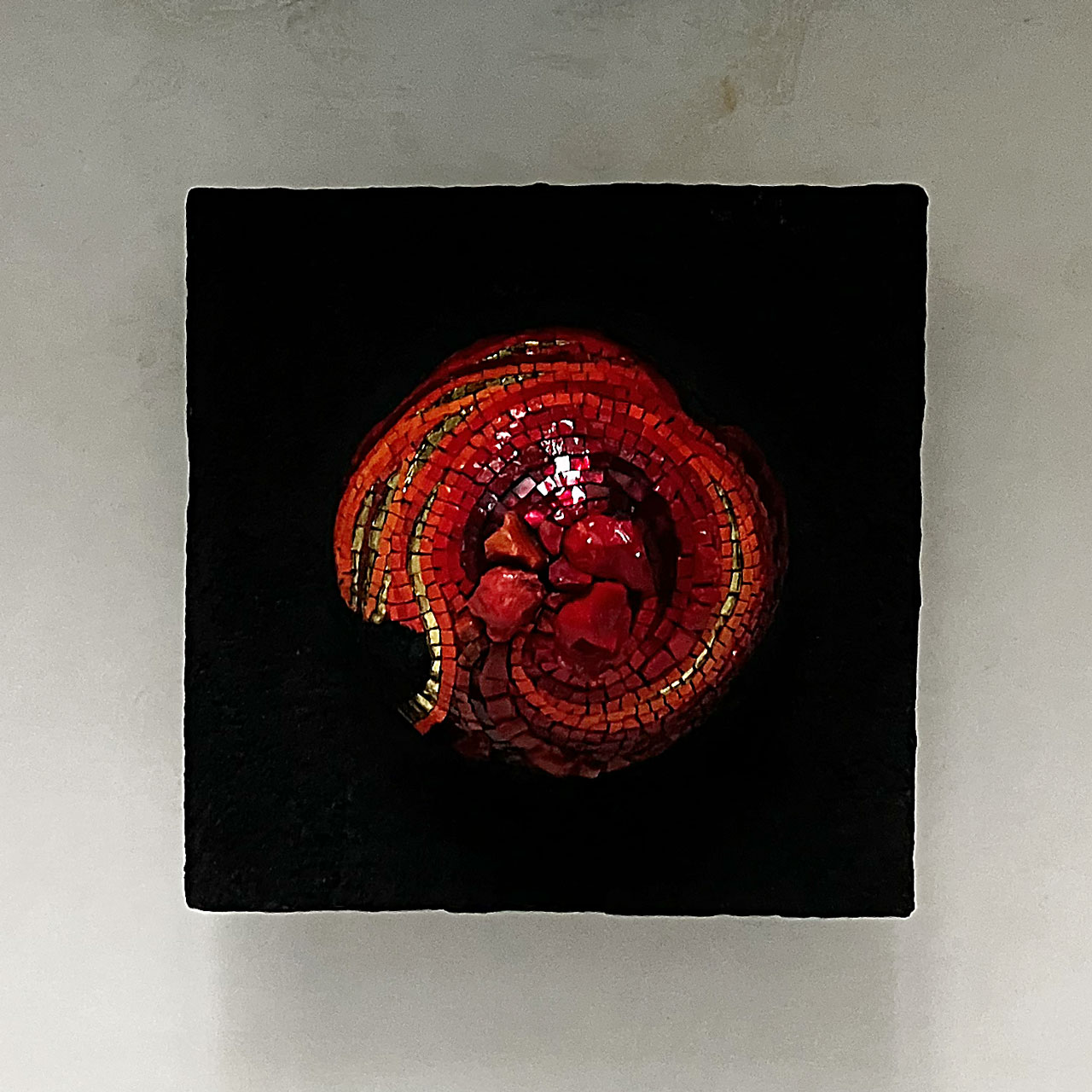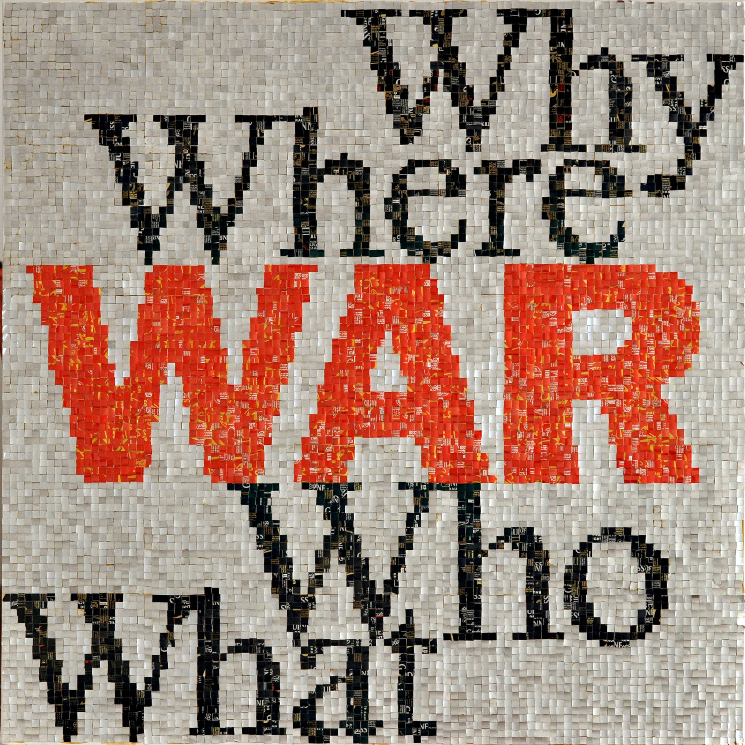 A volte però, l’ossessione è ludica, come succede alle materie plasmate in opere d’arte da Luciana Dos Santos Pretta, Caterina Vitellozzi e Luca Theodoli che espongono fianco a fianco, o meglio, stanza a stanza, negli spazi di Hunica, a Roma. Luciana Dos Santos è nata e ha passato l’infanzia in un Brasile lontano dal mare e vicino al deserto. Metafisico, come tutti i deserti. Che però, durante la stagione delle piogge si trasforma in una prateria. Così i suoi oggetti recuperati e intrisi di colori forti e cantanti paiono voler segnare e rigenerare il vuoto in ritmi di pigmenti e recuperare i giochi d’infanzia quando ogni oggetto si trasforma in un giocattolo: scatole di cartone, confezioni per uova o tele materiche come lenzuoli o mantelli cangianti che aprono lo sguardo a geografie dell’emozione. Le sue opere hanno un tocco teatrale - le grandi tele ruvide come sipari interiori - e intimo insieme – le scatole aperte e vibranti di colore come un ricordo svelato. Caterina Vitellozzi, romana con fughe a Londra e in Cina, è una rarità: una delle poche donne a lavorare il mosaico. E lo fa in maniera insolita. Rendendo visibile la materia, anziché nasconderla nel disegno (come accade nei micromosaici, per esempio). Di più: la rende organica, inserendo nelle grosse tessere sbozzate, canne di bambù e rami di alberi. Come a far respirare la pietra dei pannelli. I suoi vulcani sembrano voler eruttare colore. I suoi tasselli di mosaico fanno pensare a pelli di animali estinti e fantastici. La materia invece diventa un caleidoscopio minuzioso nei ritratti e nelle scritte composte con lattine di metallo dal romano Luca Thedoli. Il rifiuto urbano diventa il ritratto iconico della diva, la musa di Hitchcock e principessa di Monaco, Grace Kelly. Si fa linguaggio e pensiero nella scritta dove si rimescolano ironia e protesta come in uno dei migliori slogan delle prime proteste sessantottine. Diventa anche flusso e riflusso, dai cestini, dai sorsi distratti, dai vuoti buttati all’opera ritornata. Come l’eco di un mare. Non a caso, erano di fronte al mare nella caverna di Blombos, nell’attuale Sudafrica, i primi artisti di cui si ha traccia. Sulle sponde del mare hanno preso conchiglie per fare gioielli, con l’ocra rossa del terreno hanno tracciato linee (il segno del tris, l’hashtag, vecchio di centomila anni) sulle pareti delle caverne, sui loro corpi. Hanno trovato la materia, ne è uscita arte. Un linguaggio. Nella loro lingua defunta e irrintracciabile forse hanno esclamato come il greco Archimede ere più tardi: “Eureka!”. Ho trovato.