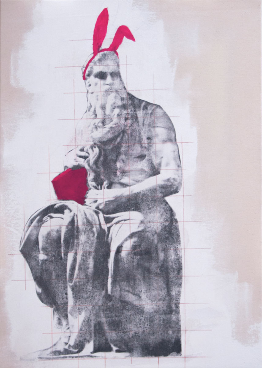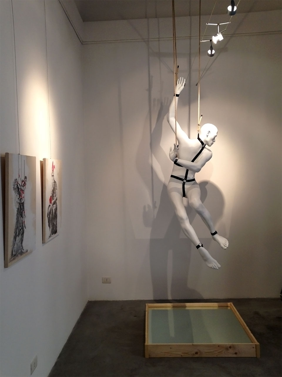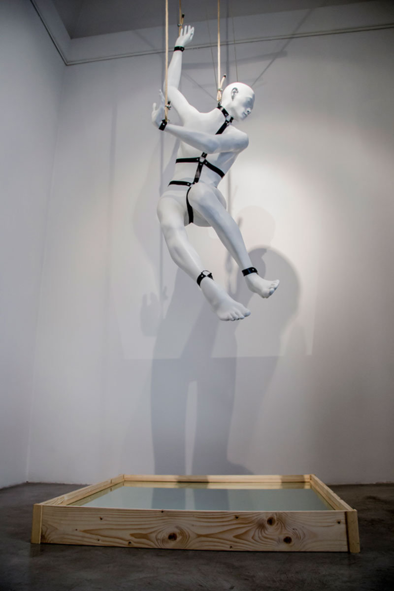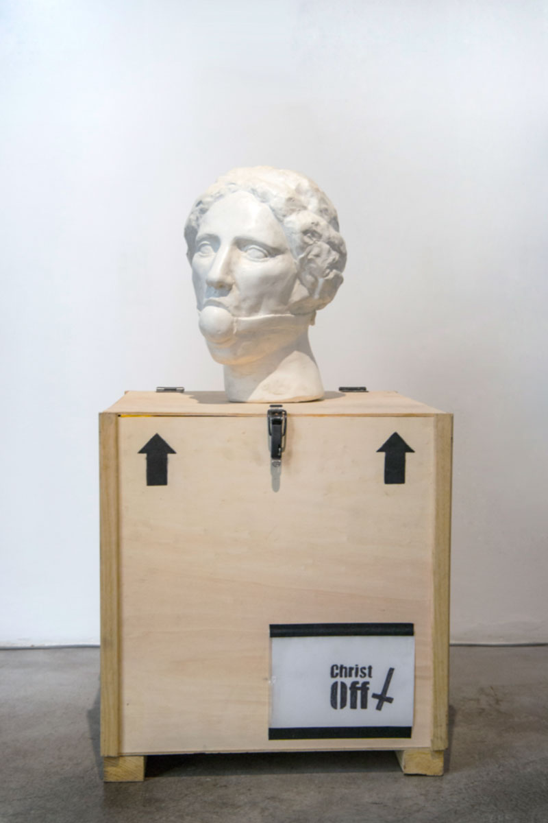 La ricerca di Christophe Constantin è la risultante, concettuale ed estetica, della sintesi tra due lontane ma non totalmente diverse ideologie: Il Realismo e la PopArt. Sono infatti presenti elementi riconducibili ad entrambe le correnti, i quali ne rendono difficile l’accostamento preciso e totale nell’una o nell’altra ideologia. Ritengo sia giusto quindi dovendo analizzare l’opera di Constantin parlare di “Pop-Realismo”. Per meglio spiegare questa breve ma fondamentale premessa, prenderò in esame la “Venere”, opera presente in mostra. Già il titolo e il soggetto trattato sono un chiaro esempio di quel procedimento di approriazione di icone di massa con il quale gli artisti Pop si impegnavano a raggiungere un linguaggio visivo immediato e universalmente riconoscibile dal popolo nella sua totalità. Se però le icone di cui si servivano i Pop erano quelle del consumismo più gretto e sfrenato, Constantin si appropria invece di immagini più raffinate, derivanti dai grandi capolavori dall’arte del passato, ma comunque riconoscibili in virtù di una sedimentazione di esse nella memoria inconscia dell’umanità. Ma al contrario del Pop che nella maggior parte dei casi è rimasto superficiale, divenendo causa e sintomo dei paradossi di una società, Constantin attraverso la poetica formale ed estetica dei suoi lavori esprime con fredda ironia le forti inquietudine del nostro tempo, e contemporaneamente propone una decisa curatora nei confronti delle grandi contraddizioni maturate nei giorni nostri. Ed è proprio ciò che la distingue dalla PopArt e lo avvicina ad un Realismo di stampo sociale, politico.La Venere viene infatti impoverita e dissacrata, allo stesso modo in cui l’ideologia post-moderna e le società mass-mediali che idolatrano e inducono all’estremo consumismo hanno impoverito e dissacrato la spiritualità ed interiorità dell’essere umano, trasformandolo a tutti gli effetti in un automa predisposto all’usa e getta. La venere è così posta su un piedistallo che è la sua stessa cassa di trasporto, ad indicare come l’angoscia consumistica abbia colpito nel profondo, sino ad arrivare alla cultura e all’arte. L’opera entra in galleria, e nel momento che viene fruita è già pronta per essere riposta in magazzino, dimenticata, come si può fare con un capo d’abbigliamento o un ellettrodomestico vecchio. Come dicevo l’icona della Venere, metafora dell’azione degli sviluppi delle società capitaliste sull’uomo, viene anche dissacrata e sfruttata, costretta al silenzio da una “palla da bondage”. Un silenzio rassegnato allo sfruttamento della sua immagine per fini commerciali e pubblicitari. Ma questi elementi che inserisce Constantin non hanno una funziona esclusivamente di illustrazione concettuale, di speculazione filosofica sulla realtà. Consapevole delle anemie visive che oggi caratterizza la visione distratta, Constantin inserisce l’estetica sessuale estrema del bondage come strumento per catturare lo sguardo disattento del fruitore contemporaneo. L’idea della Venere poggiata sul piedistallo che è la sua stessa cassa di trasporto, è in realtà lo sfruttamento di un immagine stridente (il candido gesso della scultura e lo sporco legno della cassa) che causa stupore e ironia. Si crea in questo modo un percorso percettivo fenomenologico, in cui il fruitore riesce autonomamente ad approcciarsi esteticamente all’opera e risalire intuitivamente ai motivi concettuali ed ideologici che ne sono a monte.