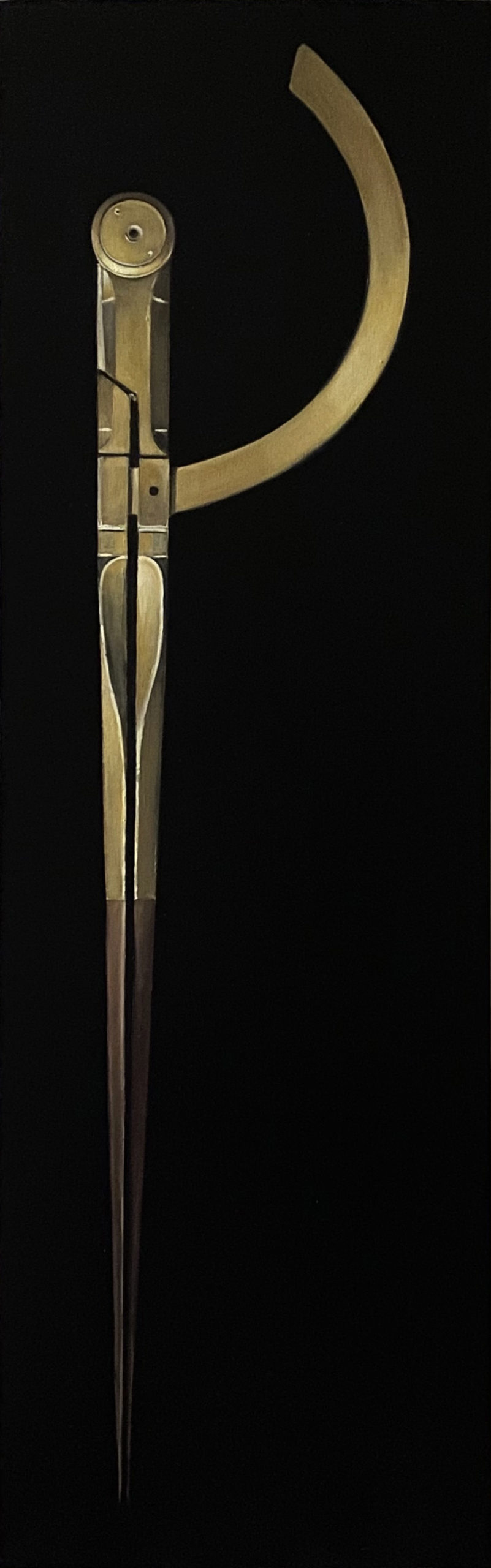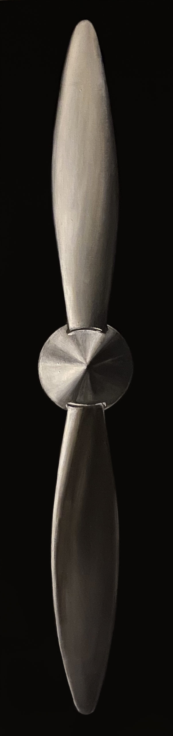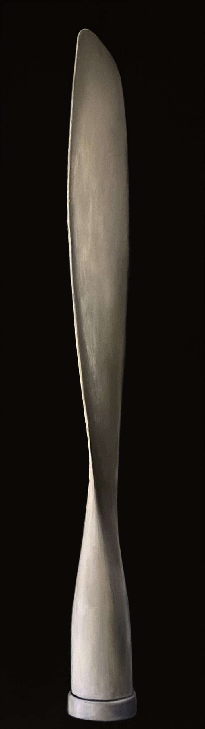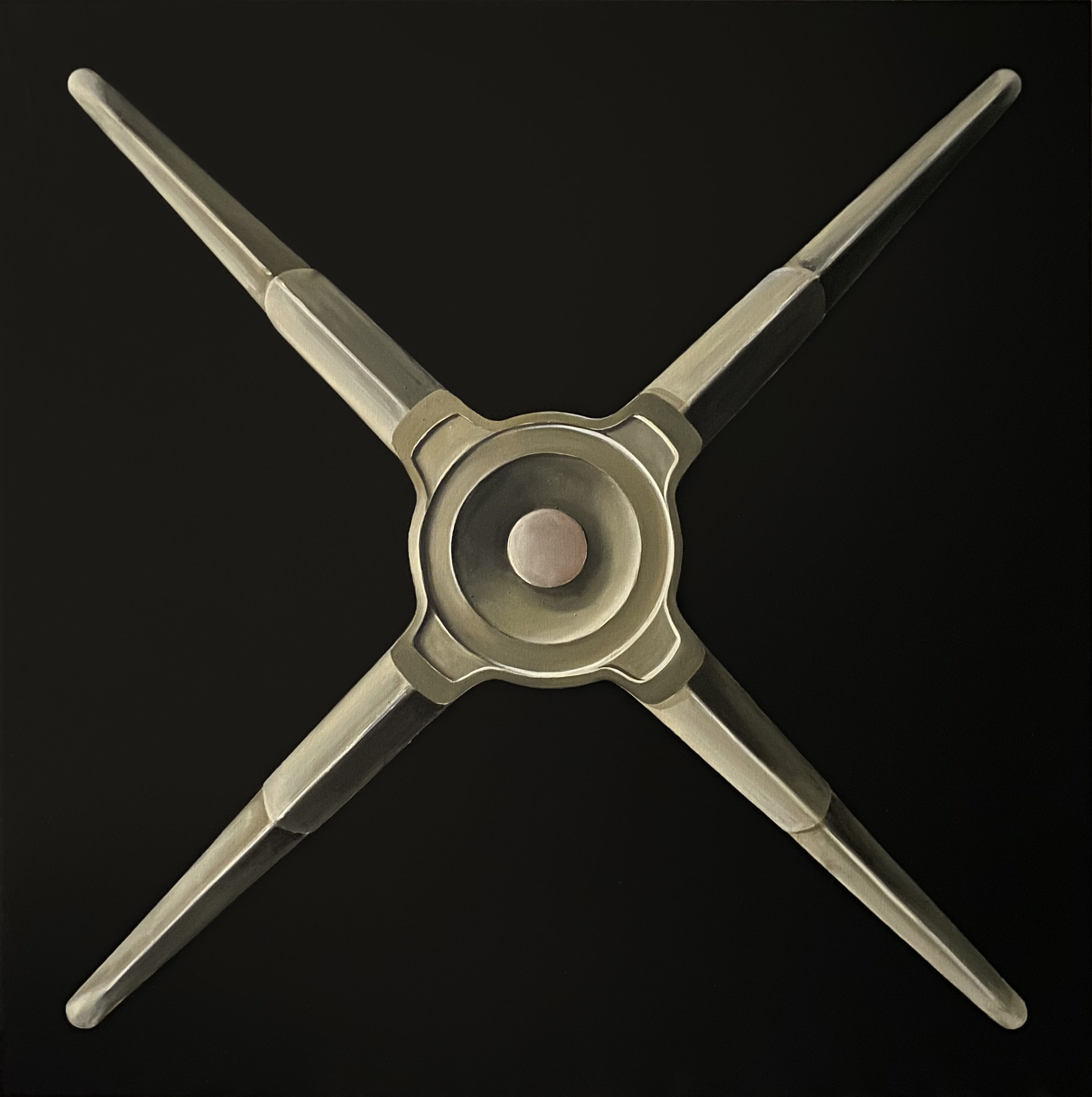 Secondo Alberto Giacometti «L’oggetto dell’arte non è riprodurre la realtà, ma creare una realtà della stessa intensità» e certamente è innegabile che alla base del lavoro artistico di Costanza Alvarez de Castro da sempre c’è un’attenta lettura e interpretazione di ciò che ci circonda, mettendo in atto un processo di riduzione dei dettagli in cui la rappresentazione della realtà concentra l’analisi e lo studio su fattori specifici della visione. Così in questo ultimo ciclo di lavori riuniti sotto il titolo di “Infinito visivo” l’artista viene fortemente attratta dalla scomposizione e ricomposizione delle forme nello spazio, che le permettono di circoscrivere entro il perimetro determinato della tela, una sensazione di finito e di infinito. L’artista mette quindi in scena la contraddizione dell’immaginario, favorendo il colore e la stesura della materia, che risolve la superficie attraverso i toni, e le suggestioni della cromia. Mentre la poesia che nasce dai colori e dal loro accostamento, evoca evoluzioni interiori che manifestano una certa inclinazione per l’espressività della visione. Sottolineata ancor più dalla ricerca di colori sobri, con sovrapposizioni leggere ma che non tralasciano, talvolta, l’inserimento di una forte componente materica insita nell’oggetto riprodotto. Carlo Carrà diceva che «la pittura deve cogliere quel rapporto che comprende il bisogno di immedesimazione con le cose e il bisogno di astrazione» e gli elementi materiali che ritroviamo in queste tele, come i vari tipi di eliche, bitte, compassi, calamai, etc prendono origine dal suo rifuggire da una visione tradizionale, dalla ricerca di una concezione particolare, delimitando a volte il riconoscimento della loro origine, dalla carica emotiva essenziale quanto ineludibile.