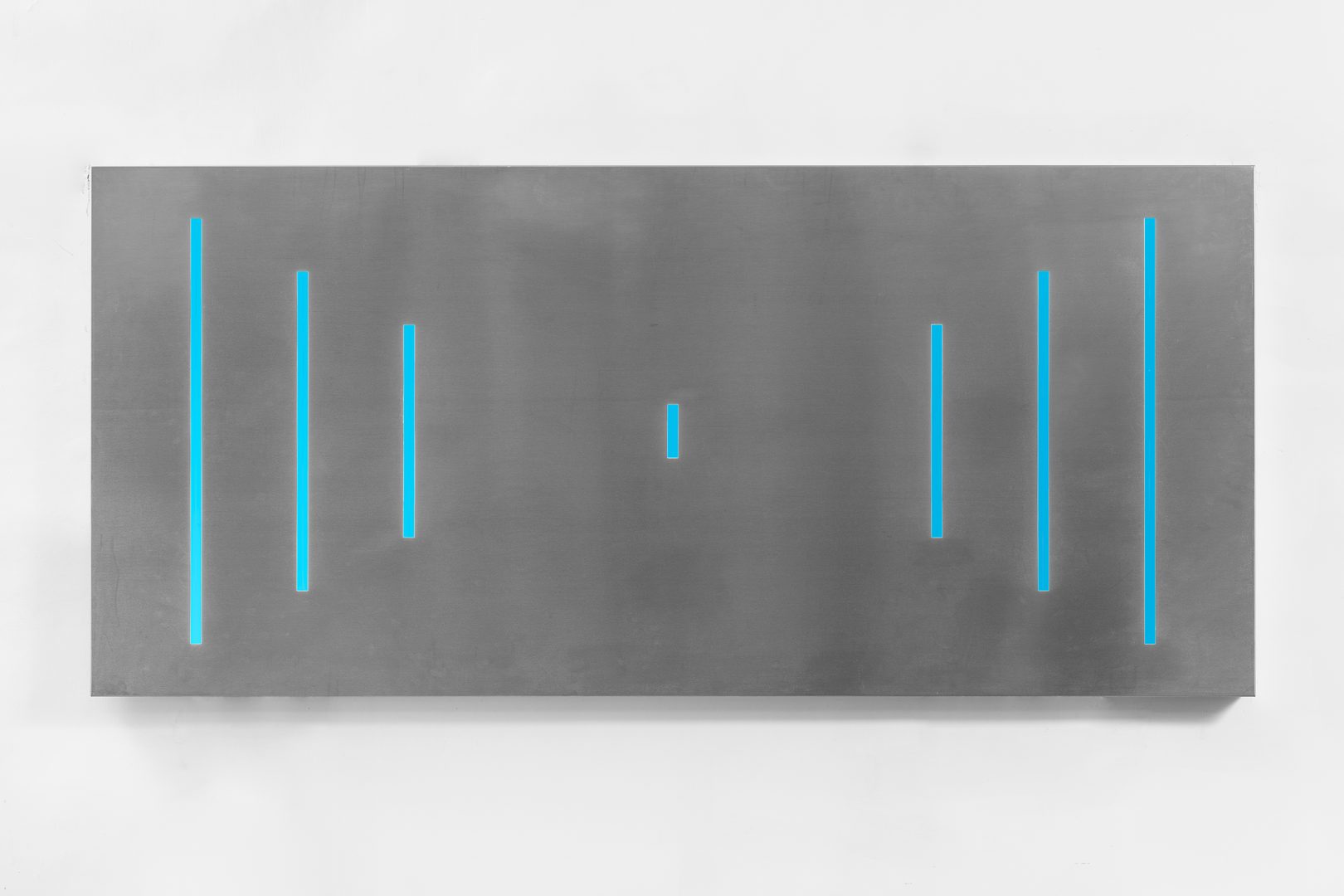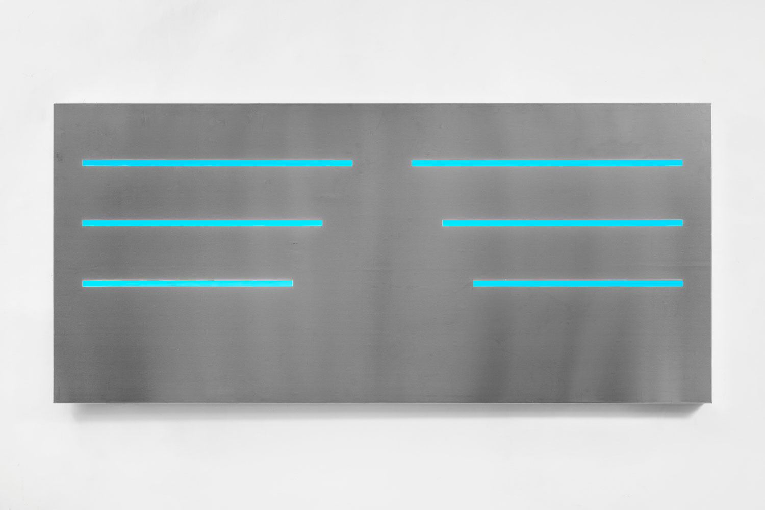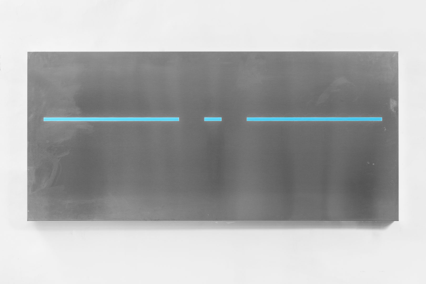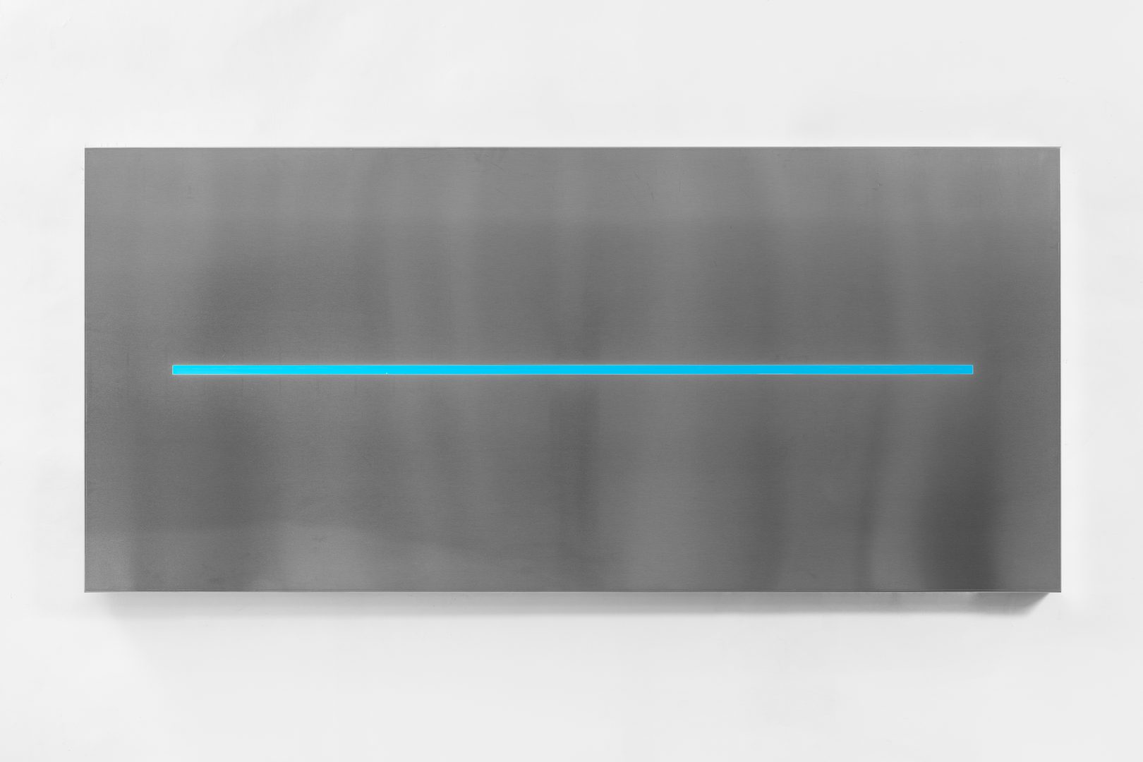 Le superfici attraversate da linee brillanti di Lostia si collegano invece ai trigrammi e agli esagrammi del Tao e dei Chin, linee intercambiabili che tracciano i destini umani su un orizzonte interiore. L’orizzonte è sempre illusorio, quello dei sensi e quello dei piloti nelle loro cabine e perfino quello suggerito negli esagrammi cinesi. L’orizzonte serve forse per tenerci in equilibrio. Con grazia e semplicità come ci indicano i lavori di Michele Lostia, il cui filo estetico porta la memoria al minimalismo di Donald Judd e ai ritmi al neon di Dan Flavin. E chiede allo spettatore di specchiarsi, con fiducia, ciascuno nel proprio orizzonte.