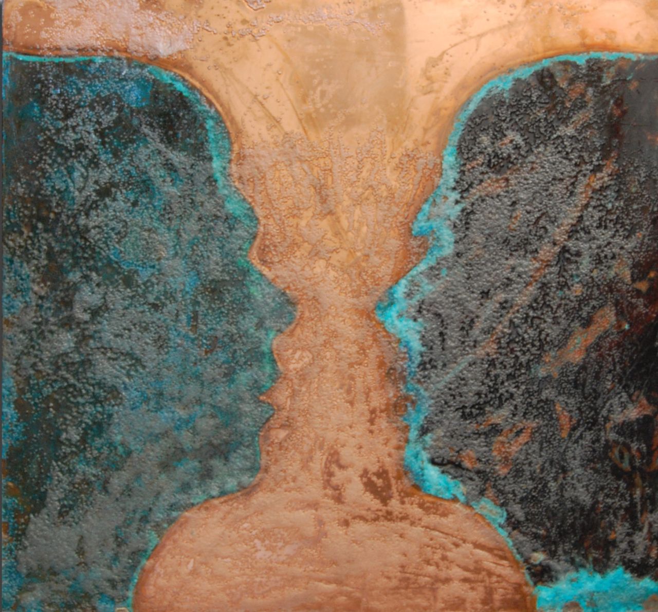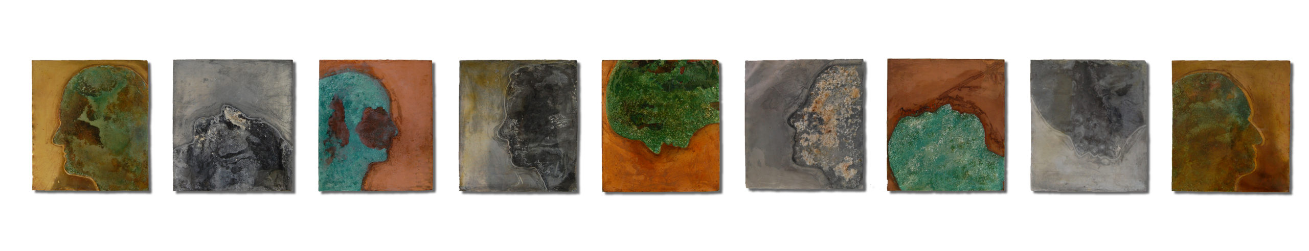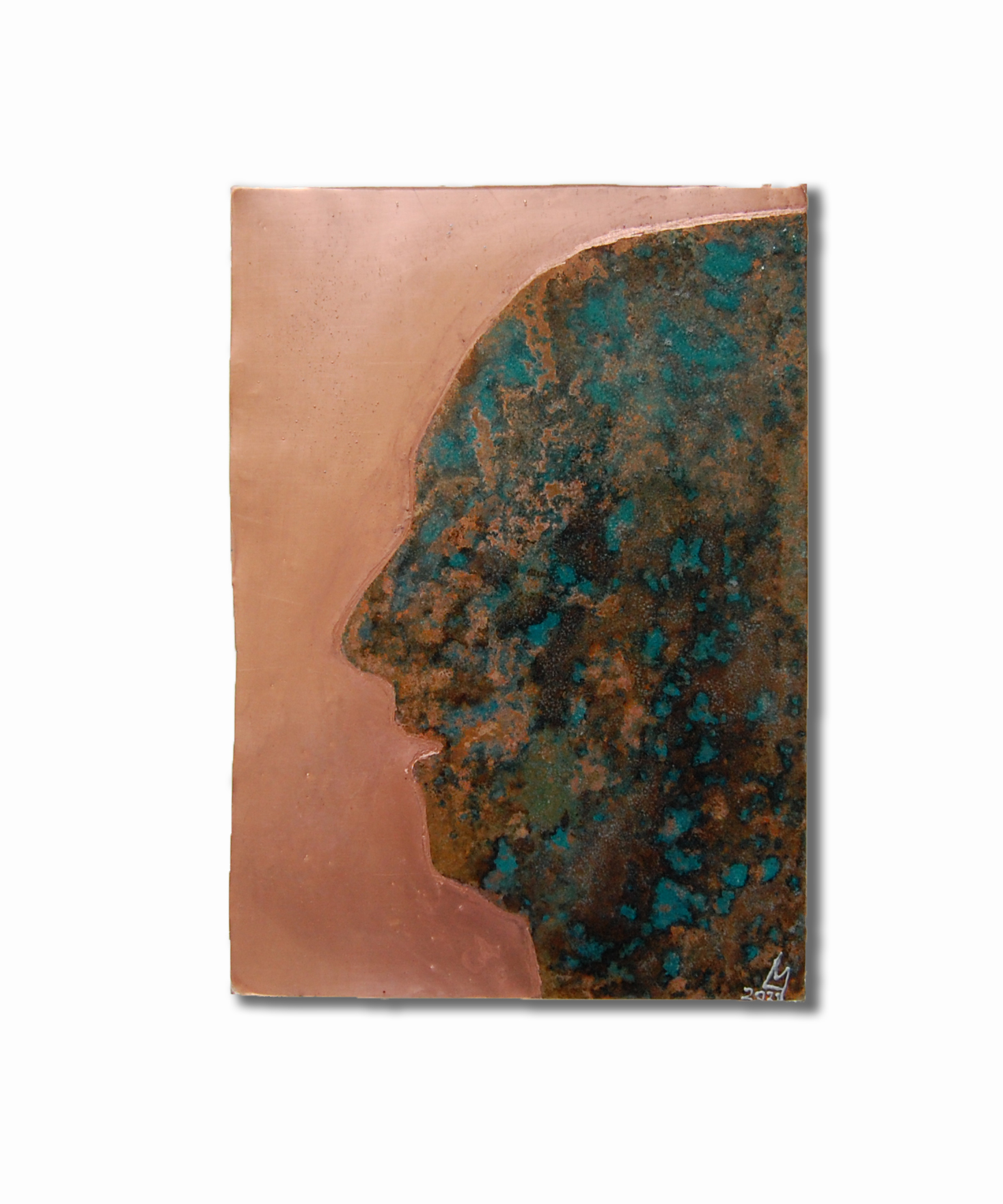 Una serie di opere di recente produzione di Micaela Legnaioli sotto il titolo “Presenze” propongono un cammino che la portano ad operare nello spazio che c’è tra l’arte e la vita. L’artista si muove in un ambito in cui la povertà della materia usata si evolve in una raffinata ricchezza dell’espressione emotiva ma chiara nei labirinti della memoria. Un tentativo di descrivere un’immagine viva e reale di persone, i cui profili interpretano le possibili situazioni interiori degli individui stessi. Nell’intenzione dell’artista le lastre di metallo ossidate con acidi e sale e scolpite vogliono dare l’idea del possibile stato spirituale depositato in ciascuno di noi a causa delle vicende della vita quotidiana, ed in particolare delle ultime vicende che la gente ha dovuto subire a causa della recente pandemia.