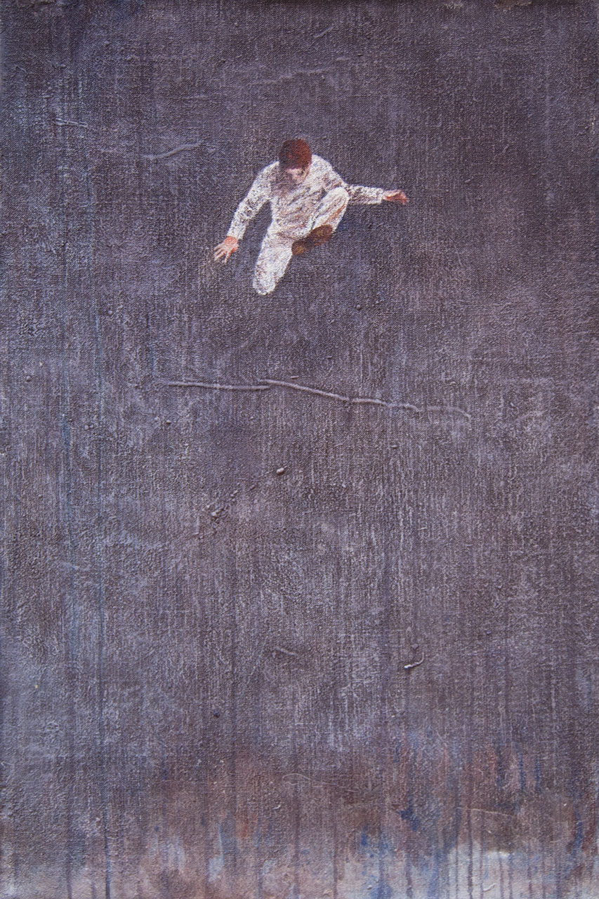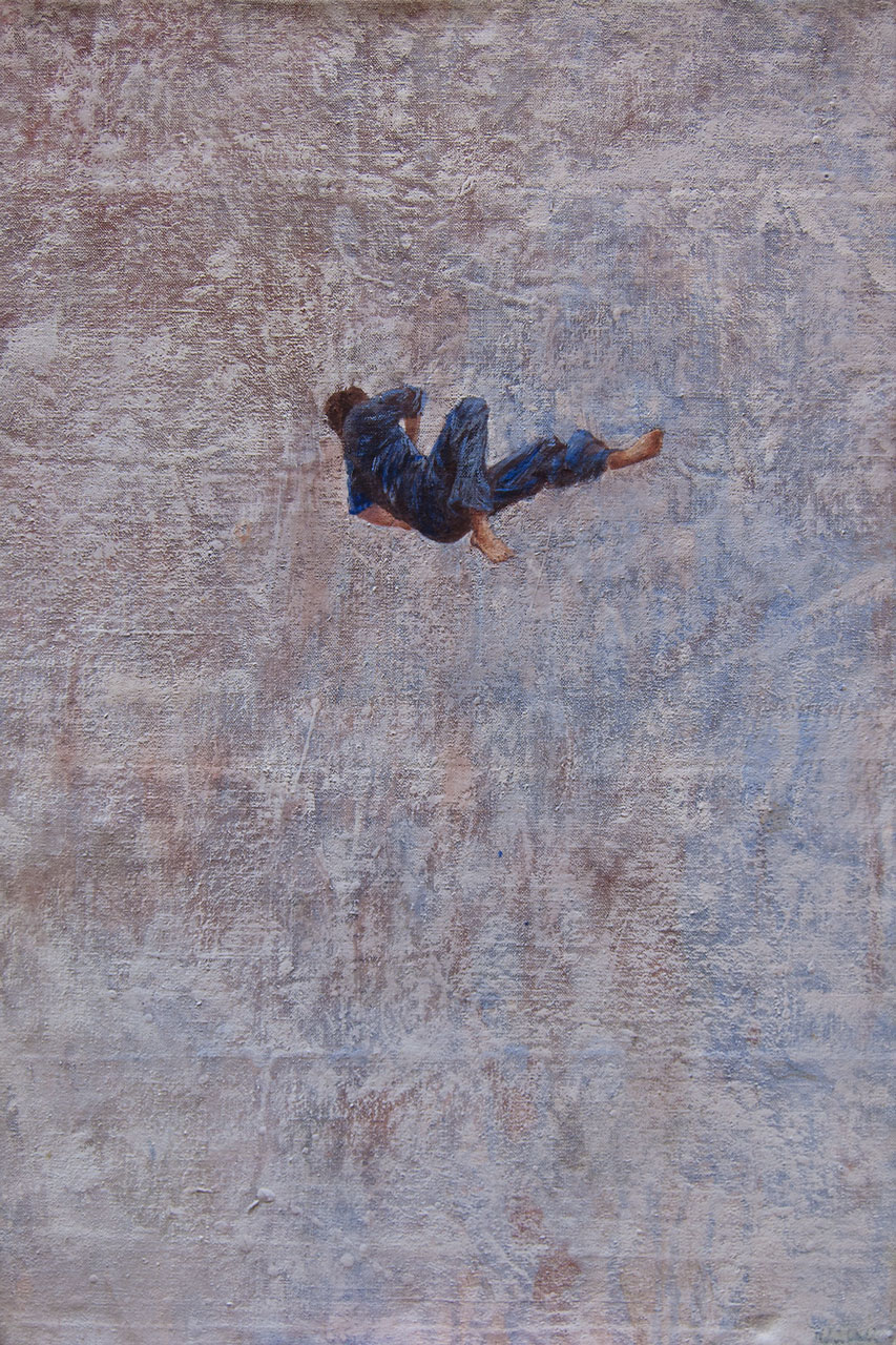 La materia densa spalmata sulla tela dona ai dipinti la pesantezza che serve ad influenzare lo sguardo per dare il senso della sospensione in un luogo irreale ed in un tempo impreciso; i colori sono variati rispetto ai suoi lavori precedenti, c’è una tendenza allo schiarimento dei toni che enfatizza ciò che dovrebbe essere complementare al disegno che invece non è per il suo significato, le ombre infatti spiccano ben delineate come ulteriori personaggi sovrastando il peso della materia. La sensazione di poter fermare il tempo, il passaggio tra il passato ed il futuro, è un importante ulteriore elemento che l’artista riesce a realizzare nelle sue opere, viene così eliminata a favore del significato concettuale la dimensione nella quale si concepisce e si misura il trascorrere degli eventi, ci si ritrova spogli di distrazioni a dover considerare l’essenzialità dell’esistenza individuale e collettiva.