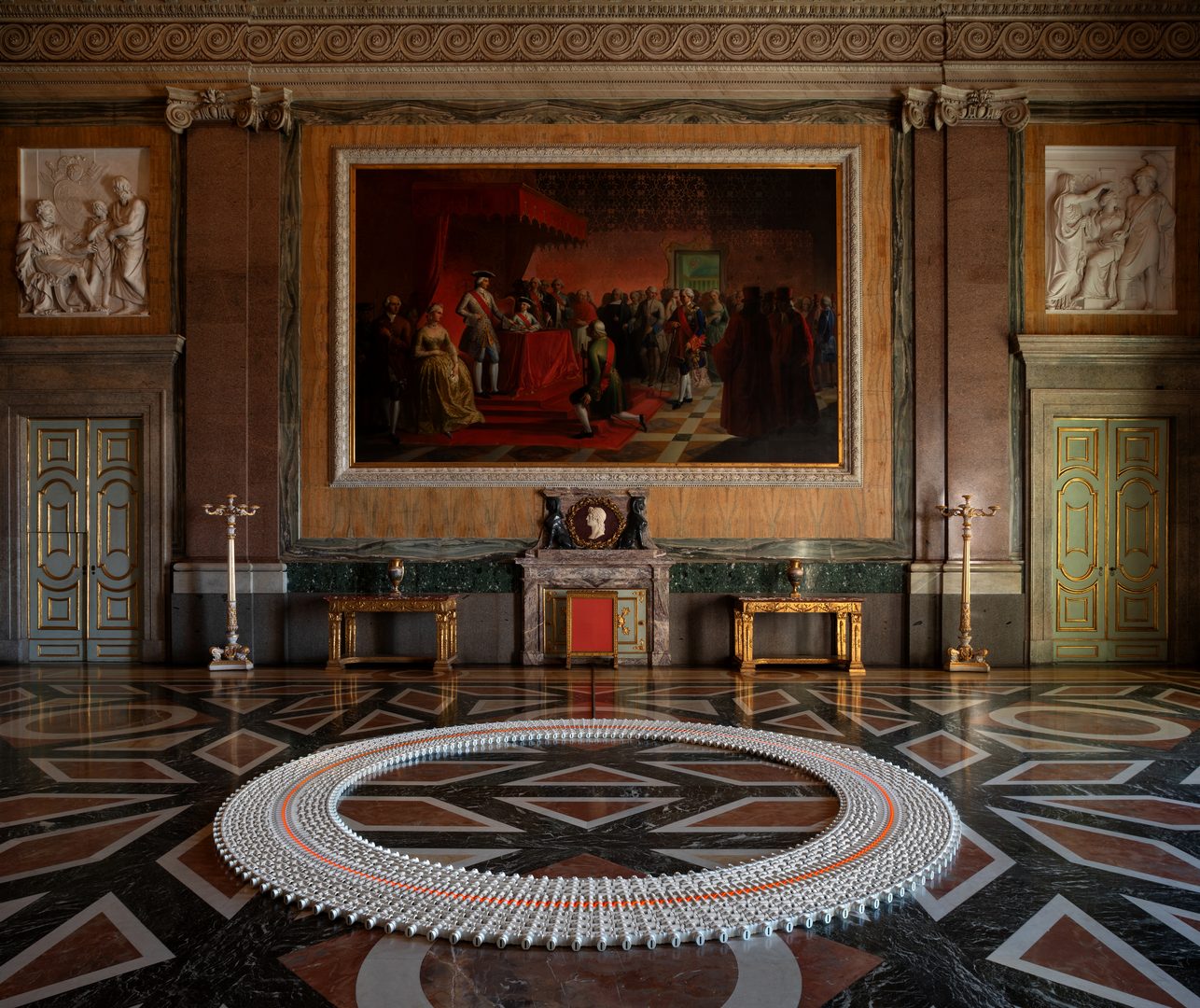 SINOPSI: Il lavoro di Shay Frisch affronta i temi dell'energia e dello spazio, ed è meglio conosciuto per i suoi campi elettrici (campo) formati dall'assemblaggio di adattatori elettrici, un elemento industriale asettico contenuto all'interno di ripetizioni modulari e trasformato dall'elettricità in una materia viva e pulsante. Il passaggio dell'elettricità attraverso l'opera, prendendo così forma, genera un campo elettromagnetico che diffonde la sua carica nello spazio circostante. I moduli che formano il “campo” mantengono all'interno una carica elettrica, rilevata da indicatori luminosi a testimonianza di un fenomeno in atto che si svolge in diretta.